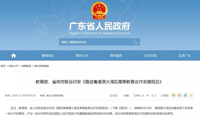 近日,教育部、廣東省人民政府聯合印發《推進粵港澳大灣區高等教育合作發展規劃》,明確到