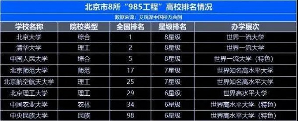 全國的985大學,一共有39所。其中北京有8所。
