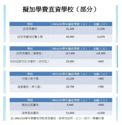 拔萃女書院、圣保羅書院、德望學校、英華書院、圣保羅男女中學等,其中學費較高的圣保羅男女中學學費維持于64,500元,其附屬小學也將凍結(jié)學費,維持于6萬3千元。