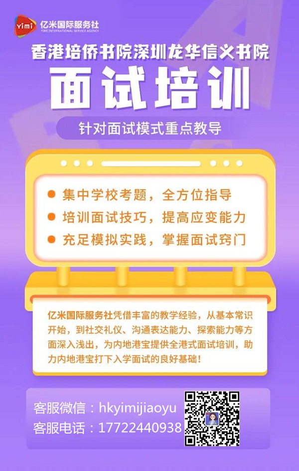 針對培僑書院深圳分校的面試情況我們億米國際服務社專門開設了相關的面試課程。