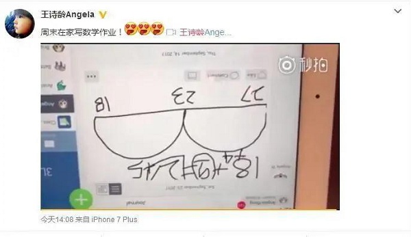 還記得李湘的女兒王詩齡曾經在微博曬了一個用英文示范解數學題的視頻,視頻里王詩齡用一口流利的英文講述了18+9的解答方法。