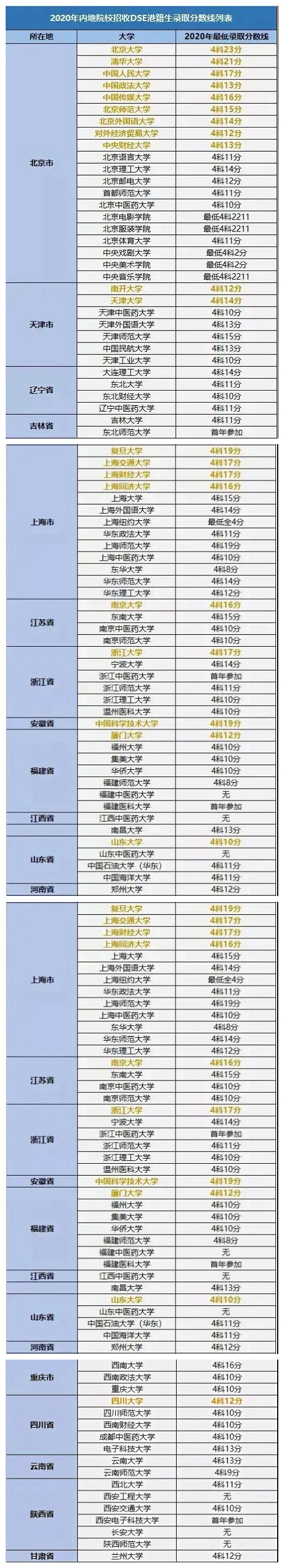 如果想回流內地上大學,還能憑借DSE成績申請內地127所學校,包括清華、北大、復旦、交大等知名學府。