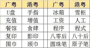 比如說:廣州粵語中的U盤是直接根據(jù)普通話音譯過來使用,而在香港粵語中就會叫手指,正式的名稱就是記憶棒。