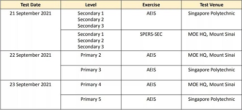 新加坡教育部(MOE)官網(wǎng)正式對(duì)外公布2021年AEIS考試定于2021年9月21日、22日和23日舉行,報(bào)名時(shí)間7月7日開(kāi)始,報(bào)名已經(jīng)與8月26日截止,詳細(xì)考試時(shí)間已經(jīng)公布,下面我們來(lái)分享一下與考試相關(guān)的注意事項(xiàng):