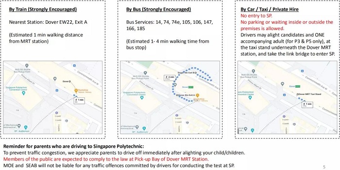 Tips:需要注意的是,今年的考試地點(diǎn)根據(jù)考試不同年級(jí)組分為兩個(gè):MOE HQ(Mount Sinai Road)與 Singapore Polytechnic