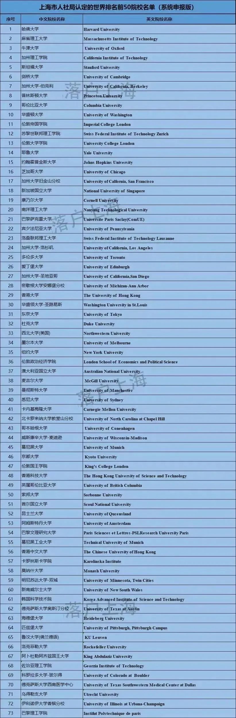 現在只要背景是世界前50院校,來上海市從事全職工作后相當于0門檻申辦落戶!