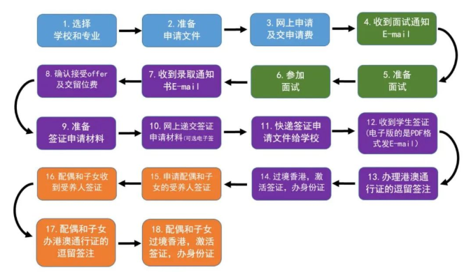 很多家長想到香港進修讀研拿香港身份,但是又擔心操作難度太大,其實,從拿到港校錄取通知書到最終全家拿到香港身份,只需要以下步驟,看完整個流程,你便會心中有數!