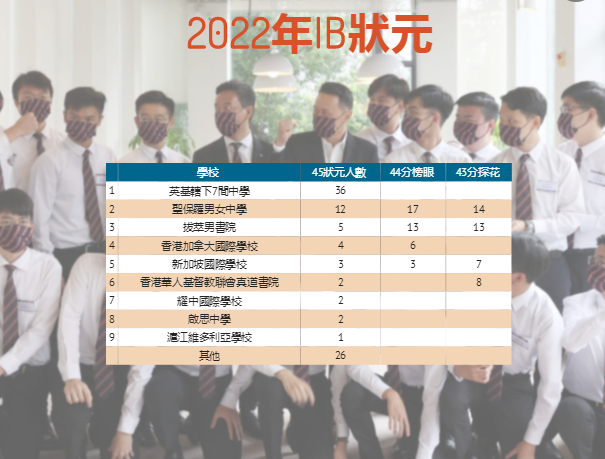 雖然狀元人數不及去年,但該校IB考生平均分達42分,為歷年最高。