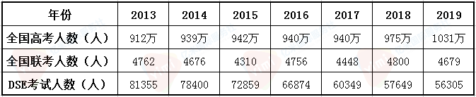 所以從報考人數可見,港籍學生想要考取國內高校,香港DSE考試競爭壓力相對較小。