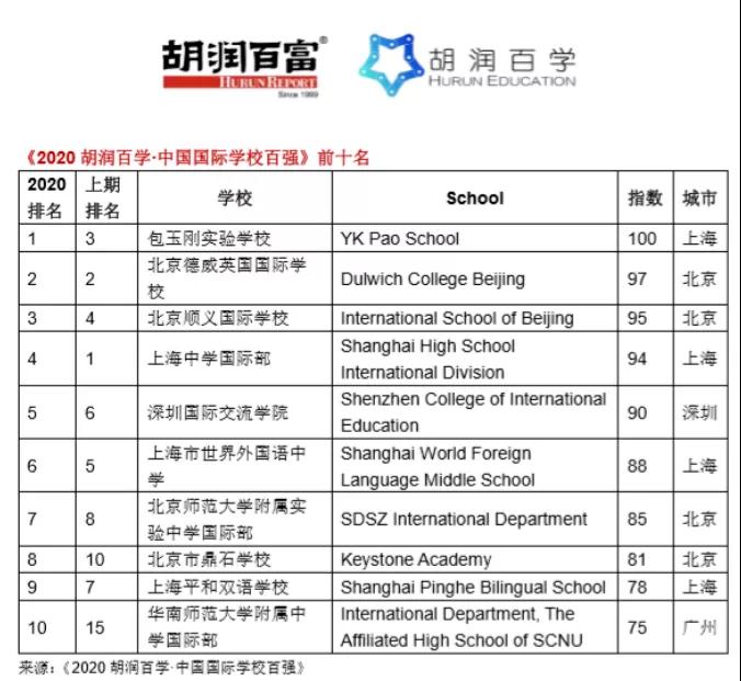 其中,排名前十的國際學校名單如下。
