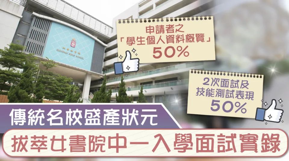 拔萃女書院2次面試成績占比50%,學業、課外成績等占50%