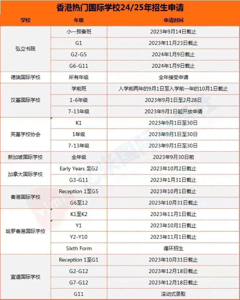 下面是9間香港熱門(mén)國(guó)際學(xué)校24/25學(xué)年申請(qǐng)時(shí)間線: