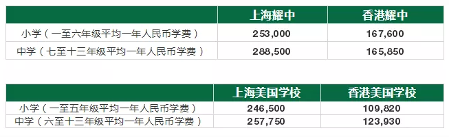 說了香港,再說回上海的學費,其實從下圖的對比我們就能看出香港和上海國際學校的差別: