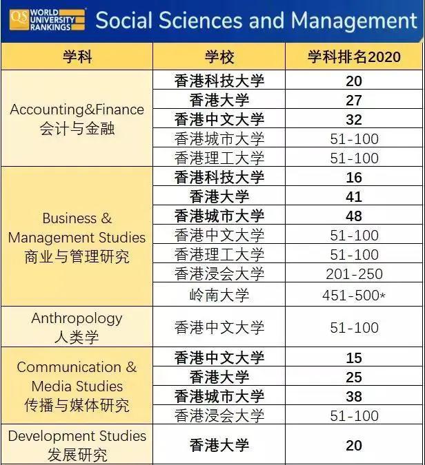 在社科領域(包含商科),港大、港中文、香科大均進入世界前50,理工大進入世界前100。