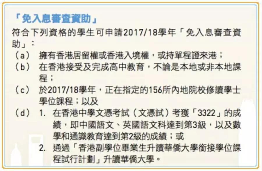 港生內地升學還會享受到教育局推出的“內地大學升學資助計劃”,比如其中的“免入息審查資助”計劃,所有符合資格的申請人可以在每學年獲得5600港幣的資助: