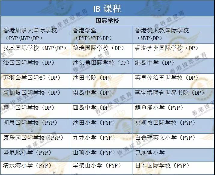根據(jù)IB國(guó)際文憑組織資料顯示,以下這些香港學(xué)校提供不同年齡段的IB課程:
