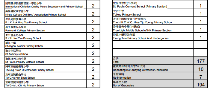 除了最多學生升讀同一辦學團體的私立滬江維多利亞學校外,不少入讀直私小,也有獲派官津名校。