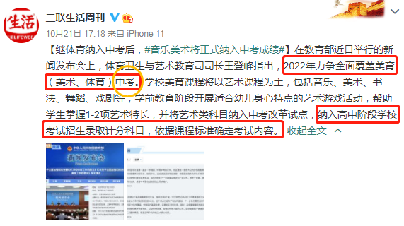不是說把體育、藝術類納入中考不好,是有點突然。長遠來看,重視體育、藝術對孩子長遠發展是好事。不怕教育改革快,就怕改革急。