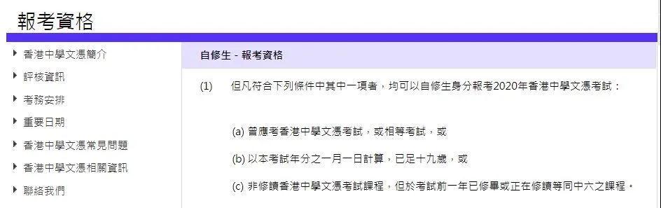目前有兩種考生能夠報讀DSE考試,一種是學校考生,另一種是自修生。而根據(jù)香港教育局公布的條件來看,以自修生的身份報考DSE,只需要滿足以下一點即可,并不需要全部滿足。