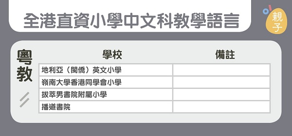 記者逐一向全港所有直資、私立、資助及官立小學(xué)查詢各校中文科教學(xué)語言,以下是以粵語教學(xué)的小學(xué)名單: