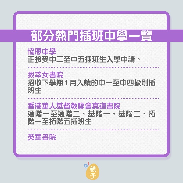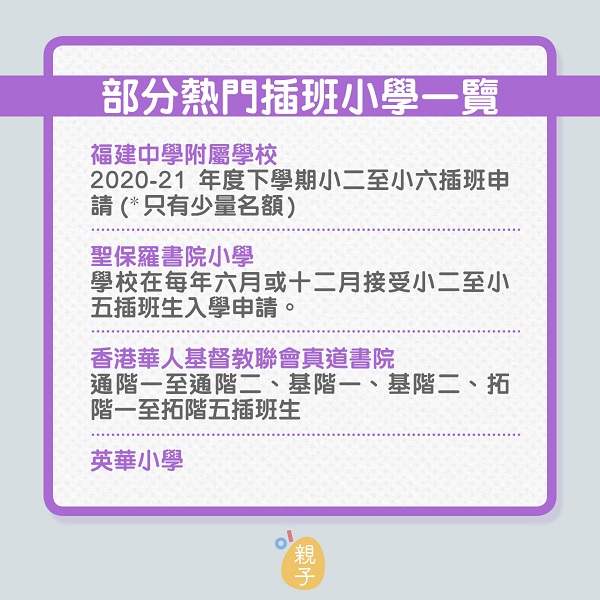 最后Ian Tsang強(qiáng)調(diào),一般在中學(xué)階段要考慮插班轉(zhuǎn)校,應(yīng)該先了解子女適應(yīng)能力方面是否理想,因?yàn)樵趯W(xué)期中轉(zhuǎn)校,需要較高的適應(yīng)能力和社交能力,才能盡快融入新環(huán)境。預(yù)計(jì)今年插班生學(xué)額的競(jìng)爭(zhēng)會(huì)相對(duì)激烈,雖然每一年類似申請(qǐng)情況的人數(shù)都不少,但今年受到傳媒廣泛報(bào)導(dǎo),自然會(huì)更多人留意。