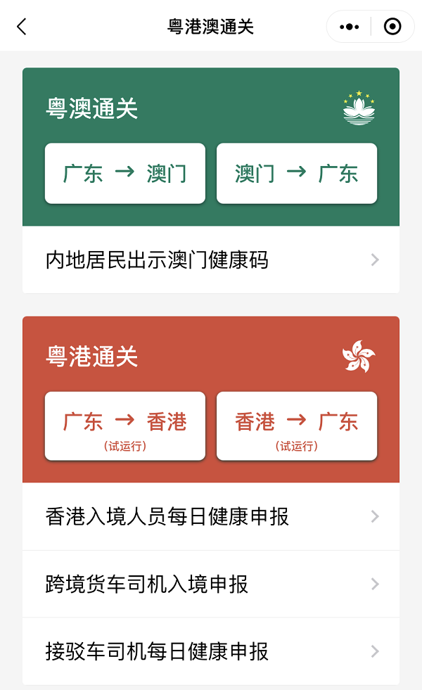 微信小程序「粵省事」在8日新增粵港通關(試運行),申請人可以在頁面上獲取通關憑證,相信是為日后通關做準備。在粵港澳通關頁面,包括「廣東往香港(試運行)」、「香港往廣東區(試運行)」,并設有3項申報類別,包括「香港入境人員每日健康申報」、「跨境貨車司機入境申報」、「接駁車司機每日健康申報」。