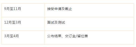雖然不同學校都會有自己一個的招生日程,但大致是以下時間: