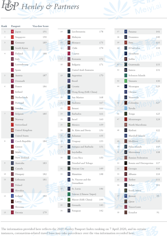 根據亨利護照指數全球護照實力排行榜顯示,