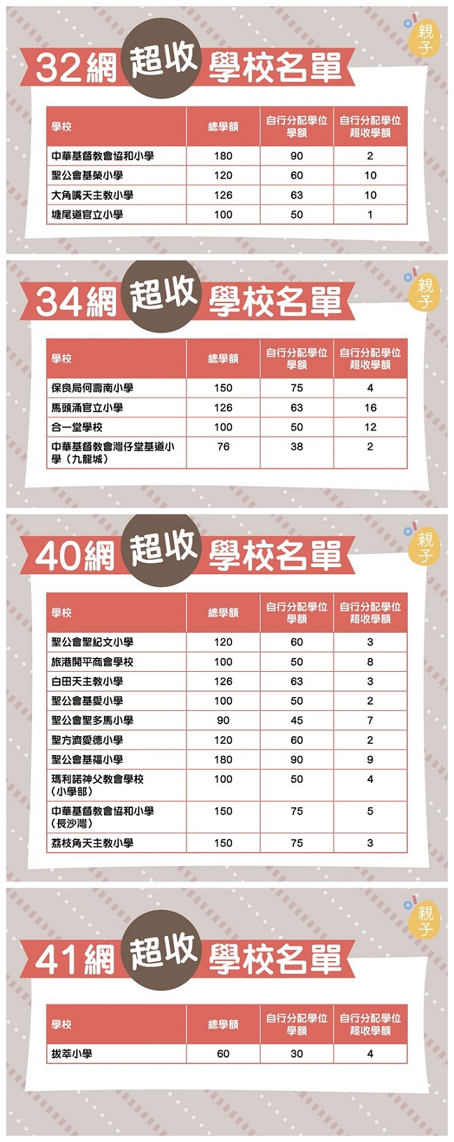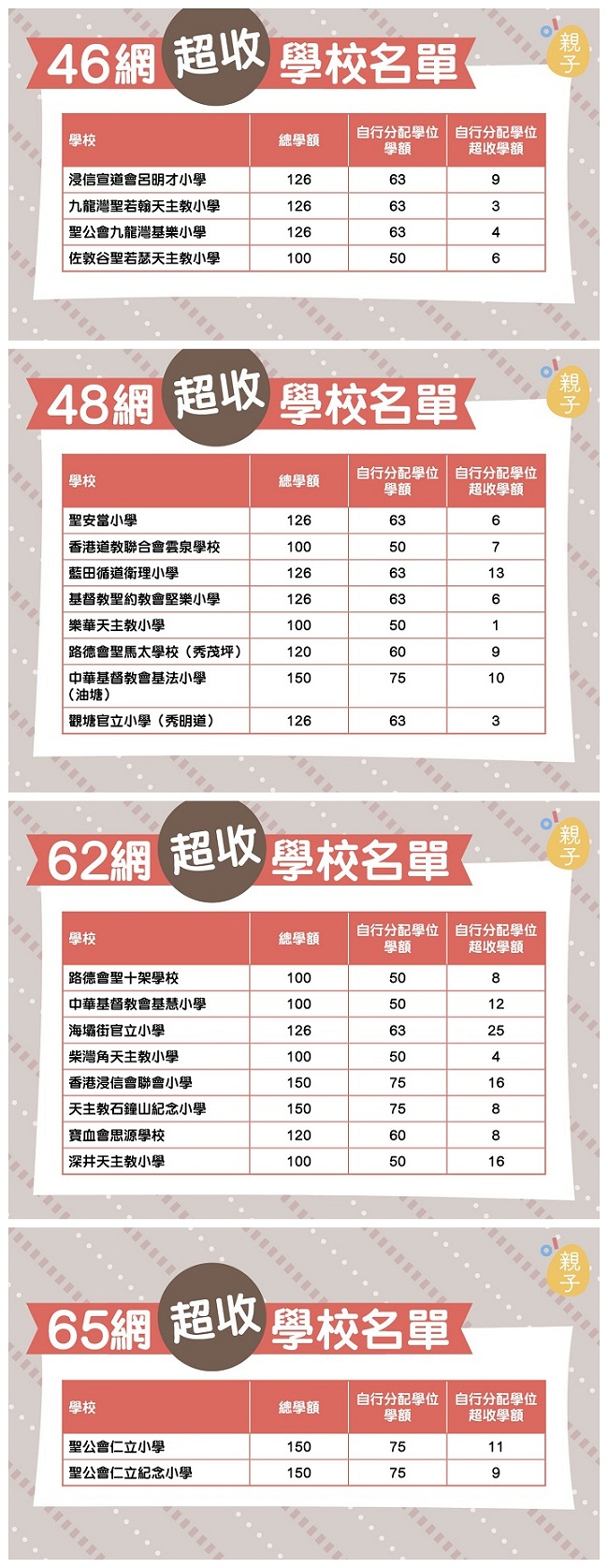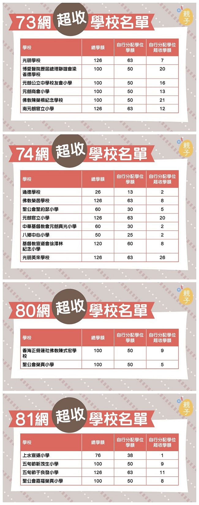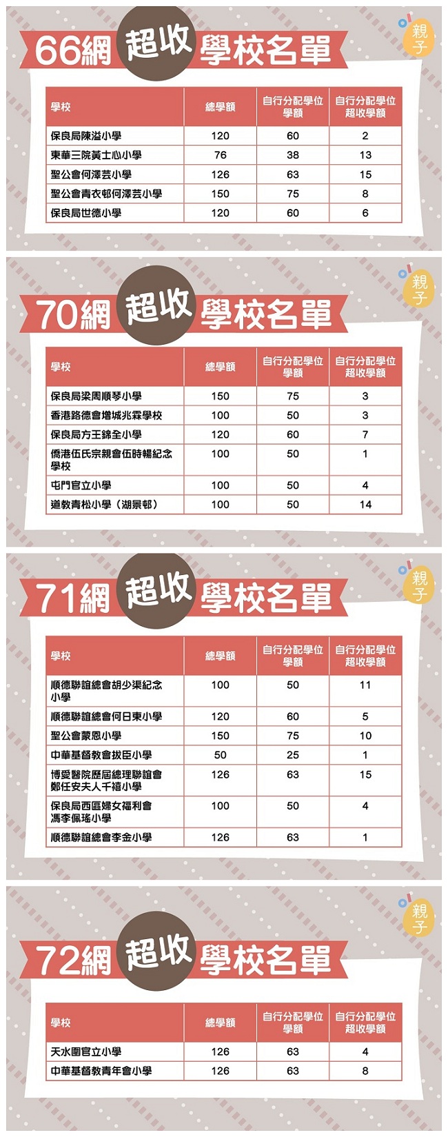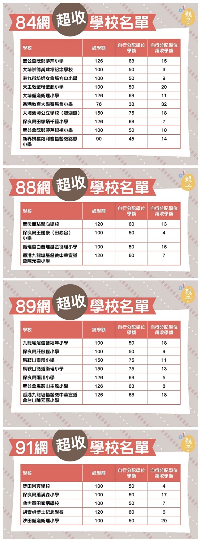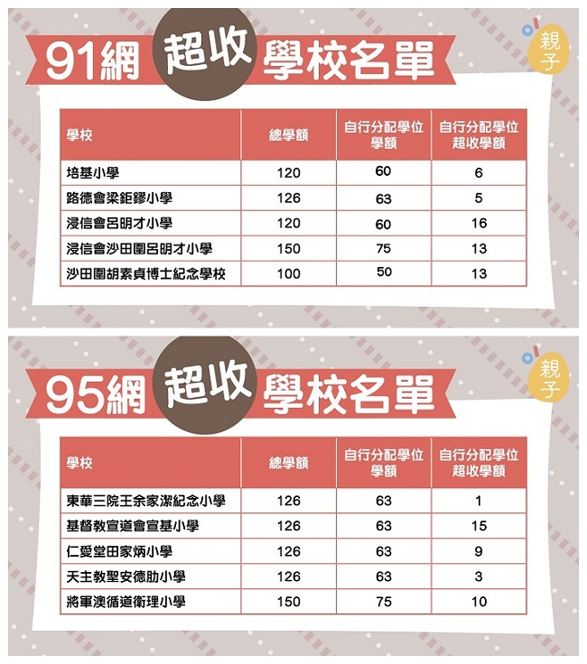 熱門校網超收學額名單: