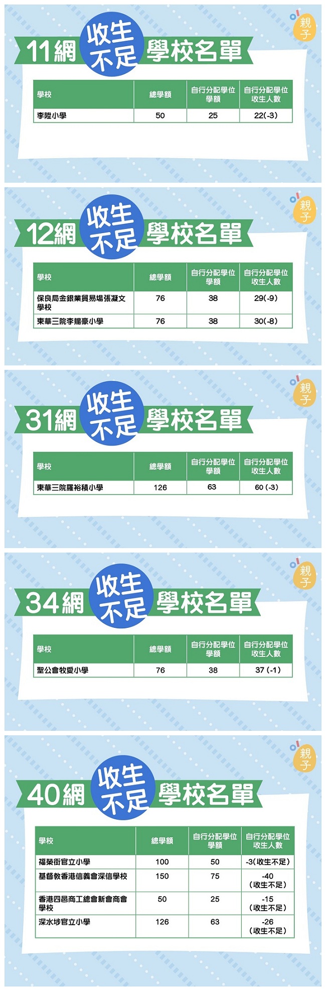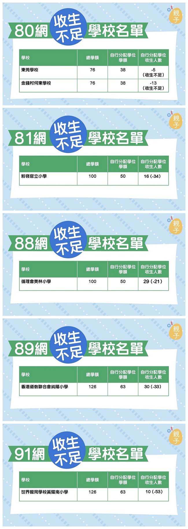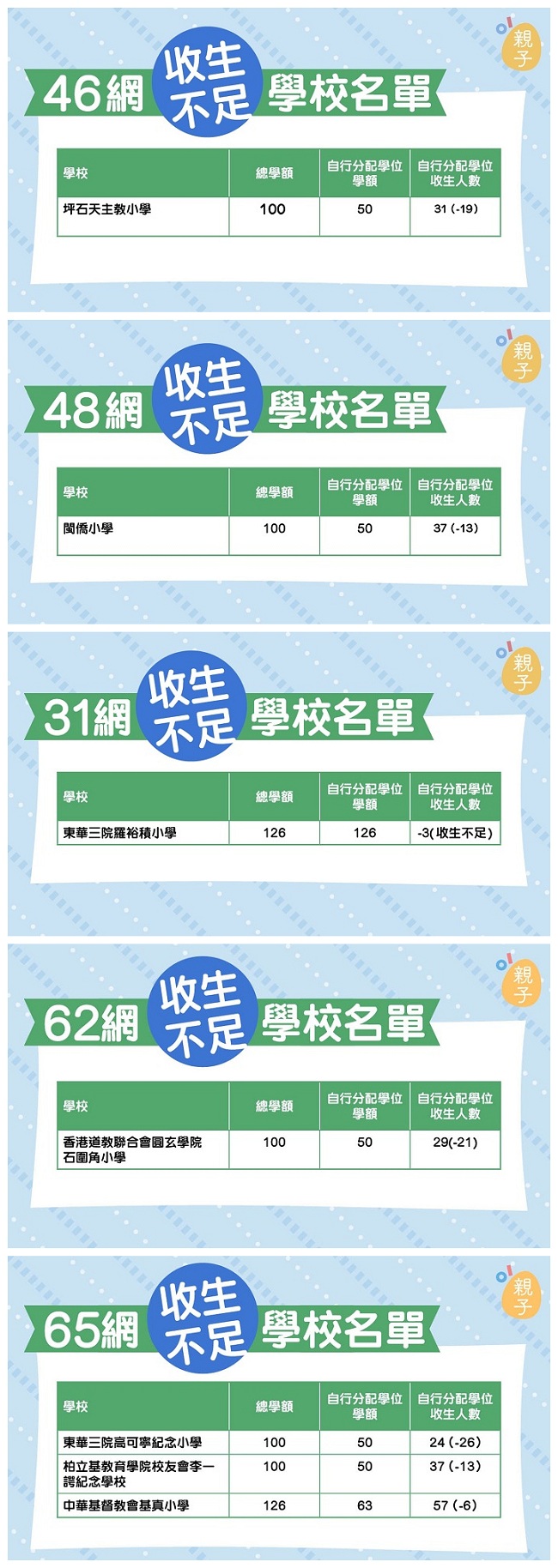 收生不足學校名單: