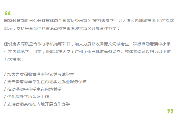 比如升學,教育部正在積極推動DSE考生上灣區升學。
