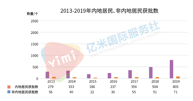從下圖可以看到,非內(nèi)地居民每年只有不到百份獲批,而內(nèi)地居民的獲批量每年均在幾百份,2019年更是高達(dá)802份,近些年來(lái),90%以上的香港優(yōu)才配額都集中在了內(nèi)地申請(qǐng)者手中。