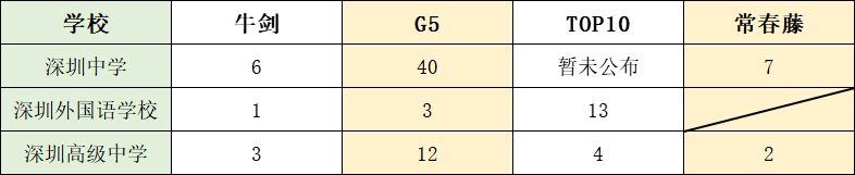 深中、深外、深高不少學生拿到英國名校的offer,雖然這三所學校申請英國方向人數并不多,但從比例來看還是不錯的。從整體對比下來看,深圳中學>深圳高級學校>深圳外國語學校。