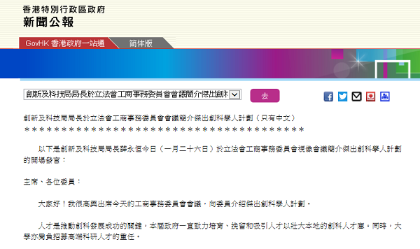香港政府動用20億元吸引國際創(chuàng)科人才赴港工作