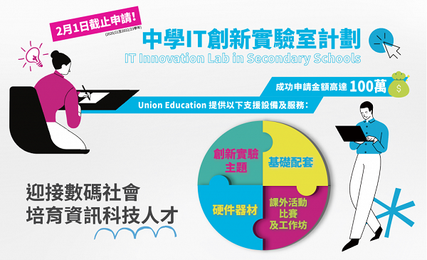 為了讓中學(xué)生有更多資源及機會,財政司在2019至20年度財政預(yù)算案撥出5億元推行「中學(xué)IT創(chuàng)新實驗室計劃」,每間中學(xué)可申請最高100萬元的資助。去年12月推出至今已有超過40間學(xué)校申請。