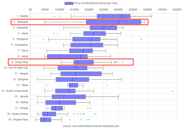 根據(jù)International Schools Database發(fā)布的亞洲國際學(xué)校學(xué)費(fèi)排名,北京、上海、深圳拿下了榜單前三!而香港排在第9位。