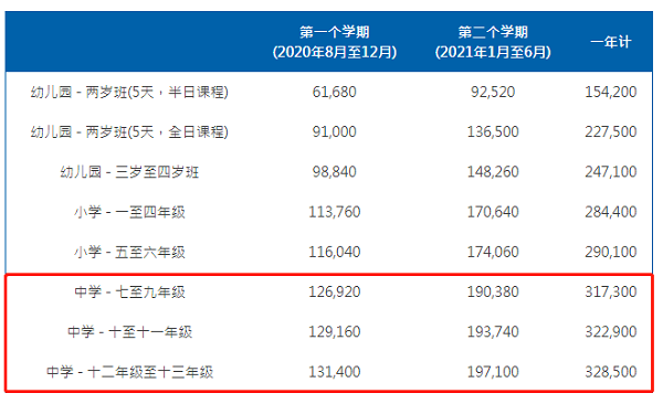 就拿同一所耀中國際學(xué)校的中學(xué)部學(xué)費(fèi)為例。
