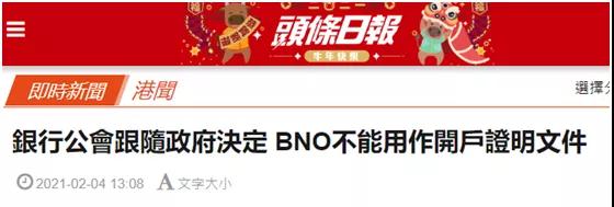 據香港《頭條日報》4日報道,香港銀行公會跟隨政府決定發出新指引,表示公會不接受銀行客戶以英國國民(海外)(BNO)護照,作為用于開立賬戶的有效旅行證件及身份證明文件。