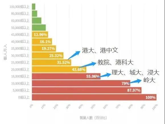香港八大中,以香港大學畢業生薪酬最高,年薪為31.9萬港幣,平均月薪超過2.6萬港幣!根據政府統計處數據得出,港大畢業生的年薪位于全港收入前31.52%,月薪高過68.48%的人!