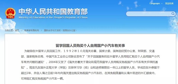 凡在境外正規學府注冊學習畢(結)業和進修期限在一年以上的留學人員,可以通過海關購買一輛國產免稅轎車。