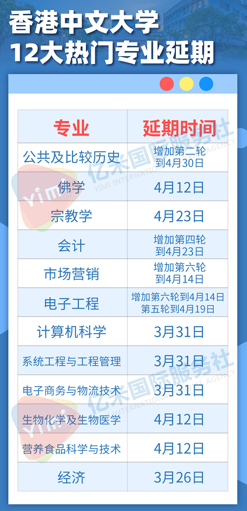 香港中文大學(xué)也宣布了12大專業(yè)延期!