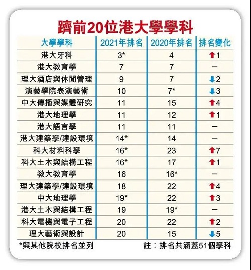 今天剛公布的2021全球大學(xué)學(xué)科排名,港校共有72個(gè)課程打入相關(guān)學(xué)科全球前50名,整體入選課程達(dá)171個(gè)!