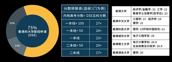 分數(shù)20+,就可以申請香港8大、17個國家+280多所海外知名院校、回內地也會有優(yōu)惠的升學政策,dse成績中等的港籍學生也能申請127所內地的985/211高校(包括清華北大)!