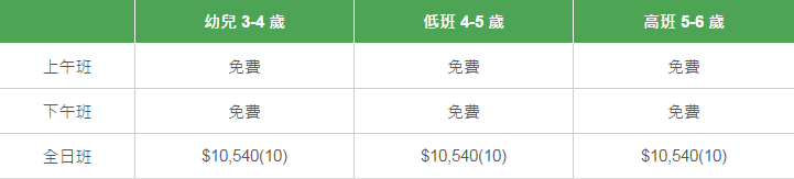 學校有參加「幼兒園教育計劃」,以下列出扣減政府資助后不同班別的全年學費和期數。