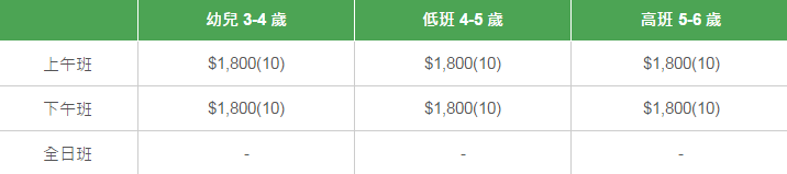 學校有參加「幼兒園教育計劃」,以下列出扣減政府資助后不同班別的全年學費和期數。