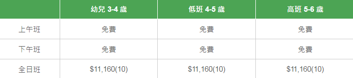 學校有參加「幼兒園教育計劃」,以下列出扣減政府資助后不同班別的全年學費和期數(shù)。