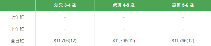 學校有參加「幼兒園教育計劃」,以下列出扣減政府資助后不同班別的全年學費和期數。
