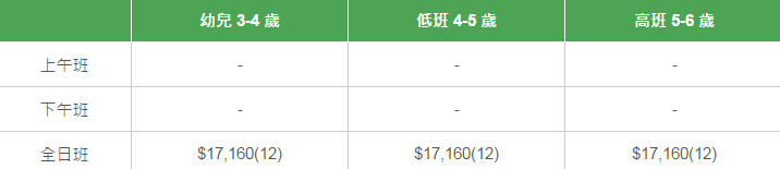 學校有參加「幼稚園教育計劃」,以下列出扣減政府資助后不同班別的全年學費和期數。