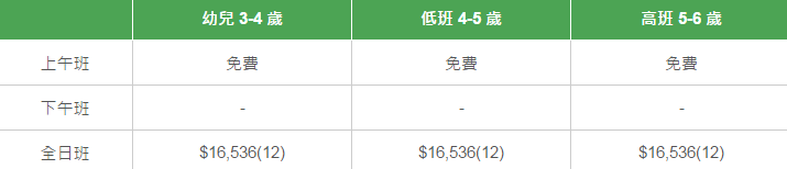 學校有參加「幼稚園教育計劃」,以下列出扣減政府資助后不同班別的全年學費和期數。