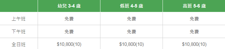 學校有參加「幼稚園教育計劃」,以下列出扣減政府資助后不同班別的全年學費和期數。